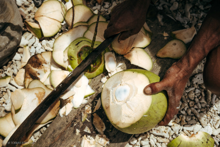 Opening a fresh coconut with a machete feels extraordinary! You never know, so better be prepared.
